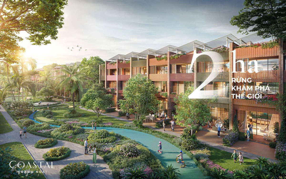 Không gian xanh tại Coastal không chỉ dừng lại ở yếu tố cảnh quan. Với quy mô lên tới 2ha, khu rừng khám phá được phát triển như một hệ sinh thái thực thụ giữa lòng đô thị. Tại đây, cư dân có thể trải nghiệm những cung đường dạo bộ dưới tán cây đa tầng, tận hưởng không khí trong lành và cảm nhận sự chuyển động tự nhiên của cảnh quan. Sự hiện diện của “khu rừng nội khu” không chỉ nâng cao chất lượng môi trường sống, mà còn góp phần định hình lối sống cân bằng – nơi con người được kết nối sâu sắc hơn với thiên nhiên.